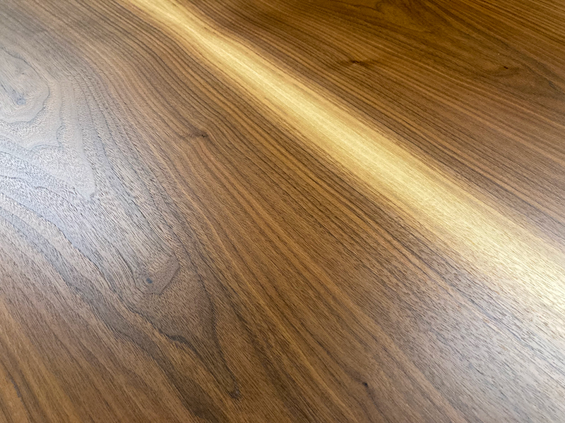 天板はウォールナット材突板仕様。中央に白太でラインを入れています。