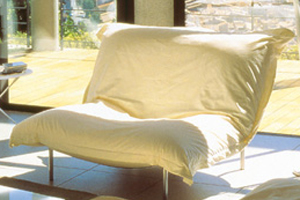 カランとはフランス語で「抱き合う」という意味で、2人が心地よくリラックスして欲しいという願いが込められて作られたソファです。「枕を2つ組み合わせた心地よさ」がコンセプトのように、ソフトで優しく抱くような感触が、誰をもくつろぎに導いてくれるソファです。3段階に背もたれが倒せるのも特徴です。