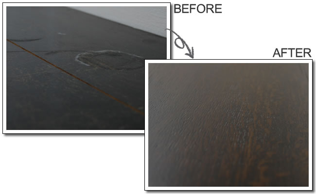 長年使い込まれ塗装が落ちてムラになっている部分や、輪染みができている部分がありました。