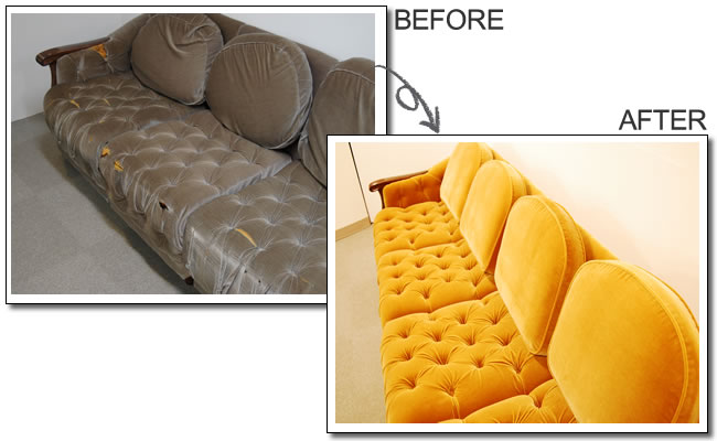 作業内容:同ランクの布地にて張地張替、ウレタン補充