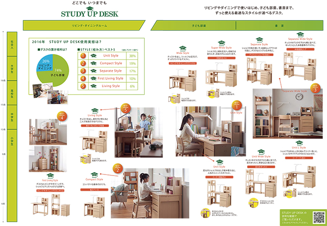 小学生から社会人まで世代に合わせて組み替えてずっと使えるSTUDY UP DESK。