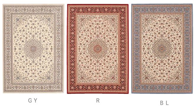 クラシカルなオリエンタルデザインをやさしい発色のウール素材で丁寧に織り上げました。